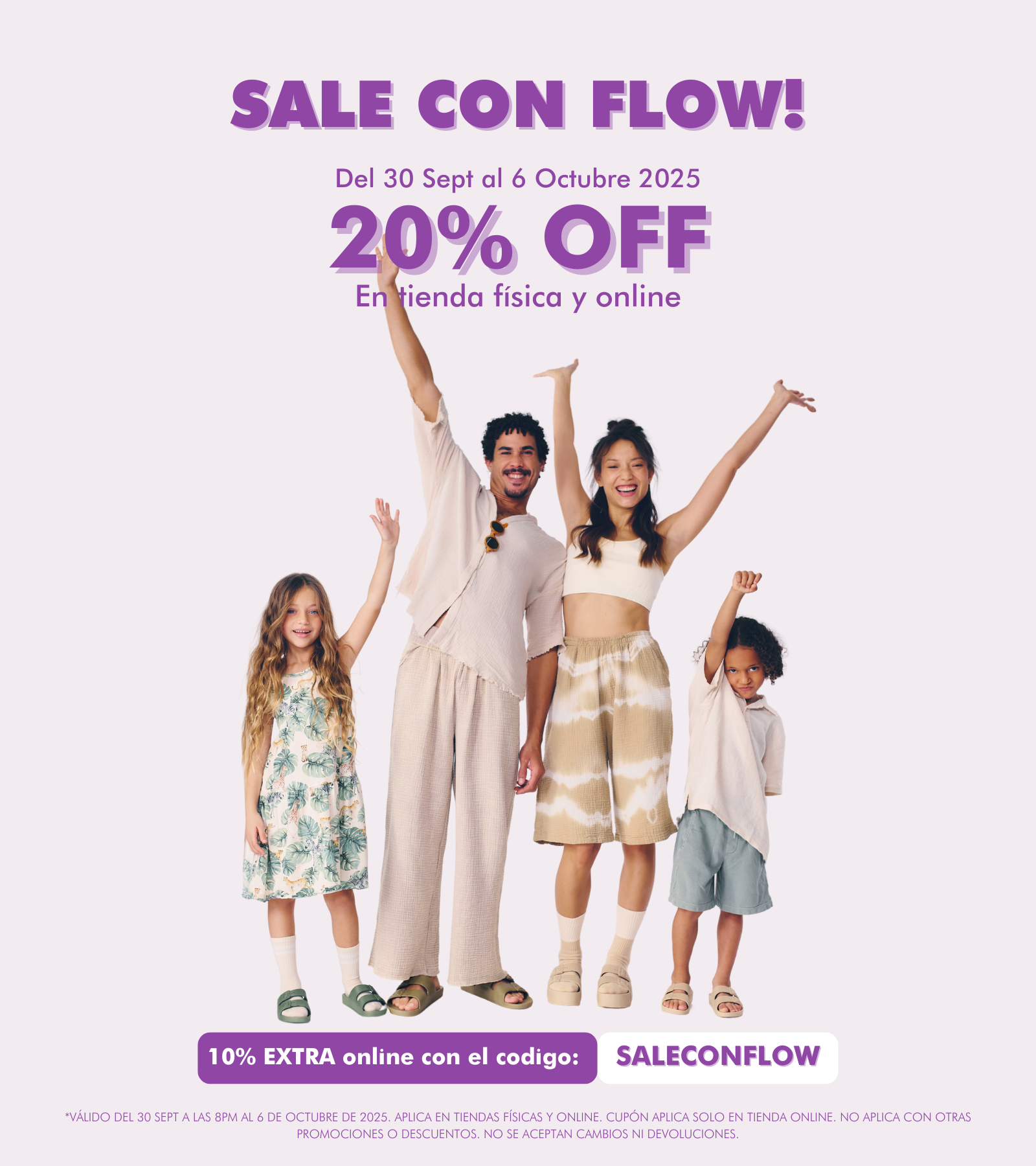 SALE CON FLOW! - 20% OFF EN TIENDA FÍSICA Y ONLINE, hasta el 6 octubre
